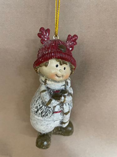A04004: Mtl rdeer ball orn,brn,rd,grn scarf,spring hang,3in