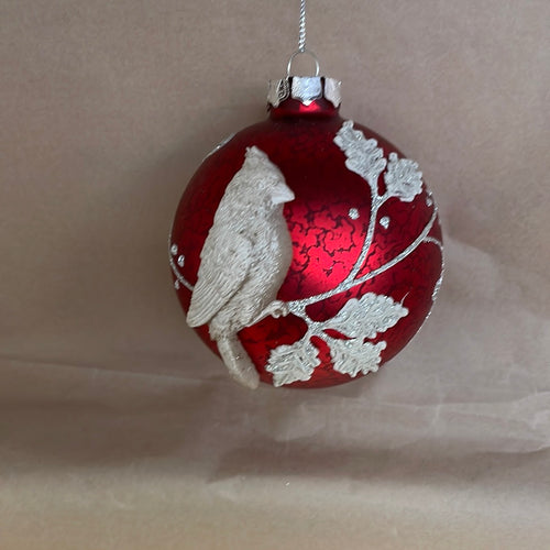 Beautiful red glass ball with bird