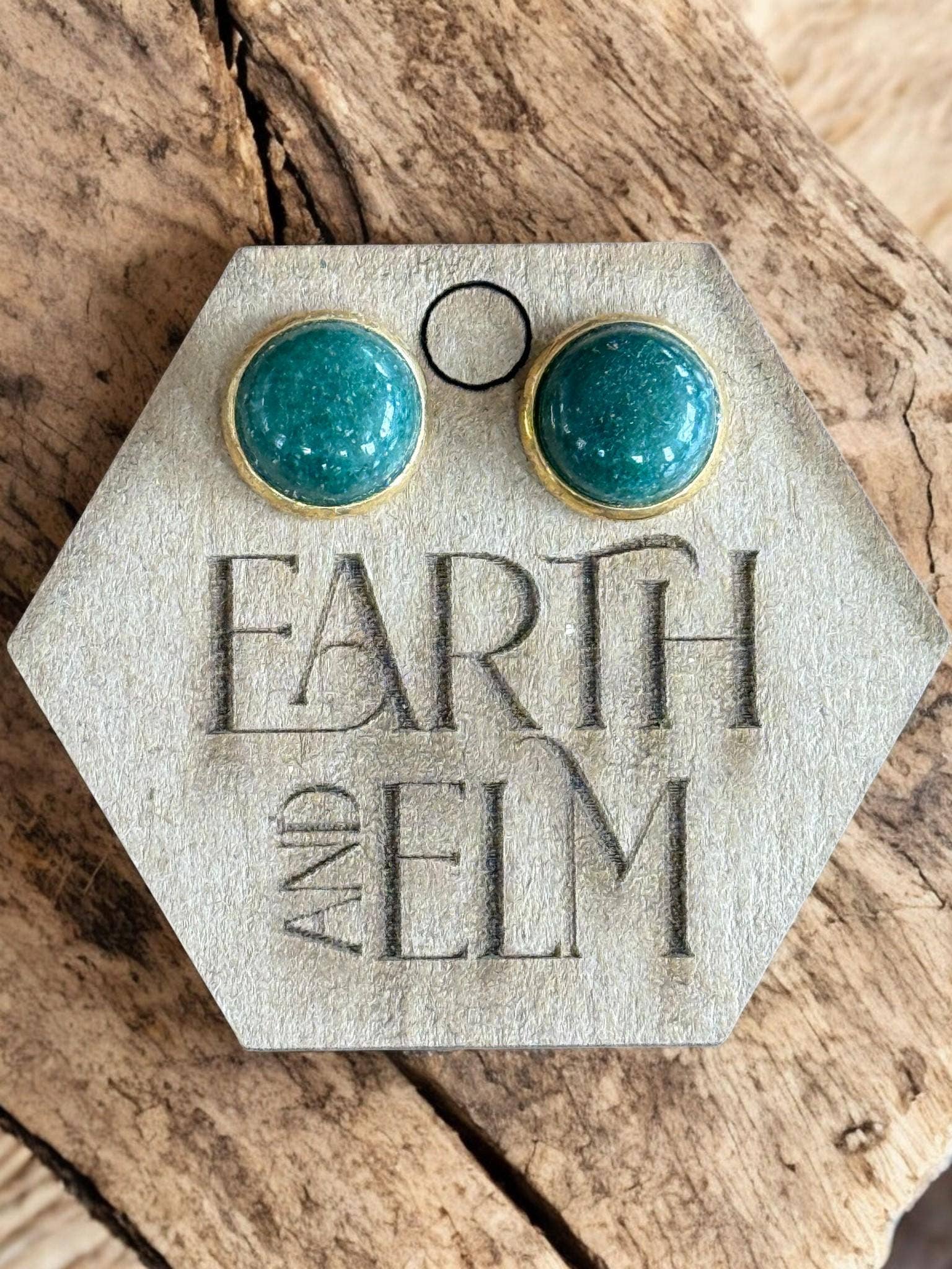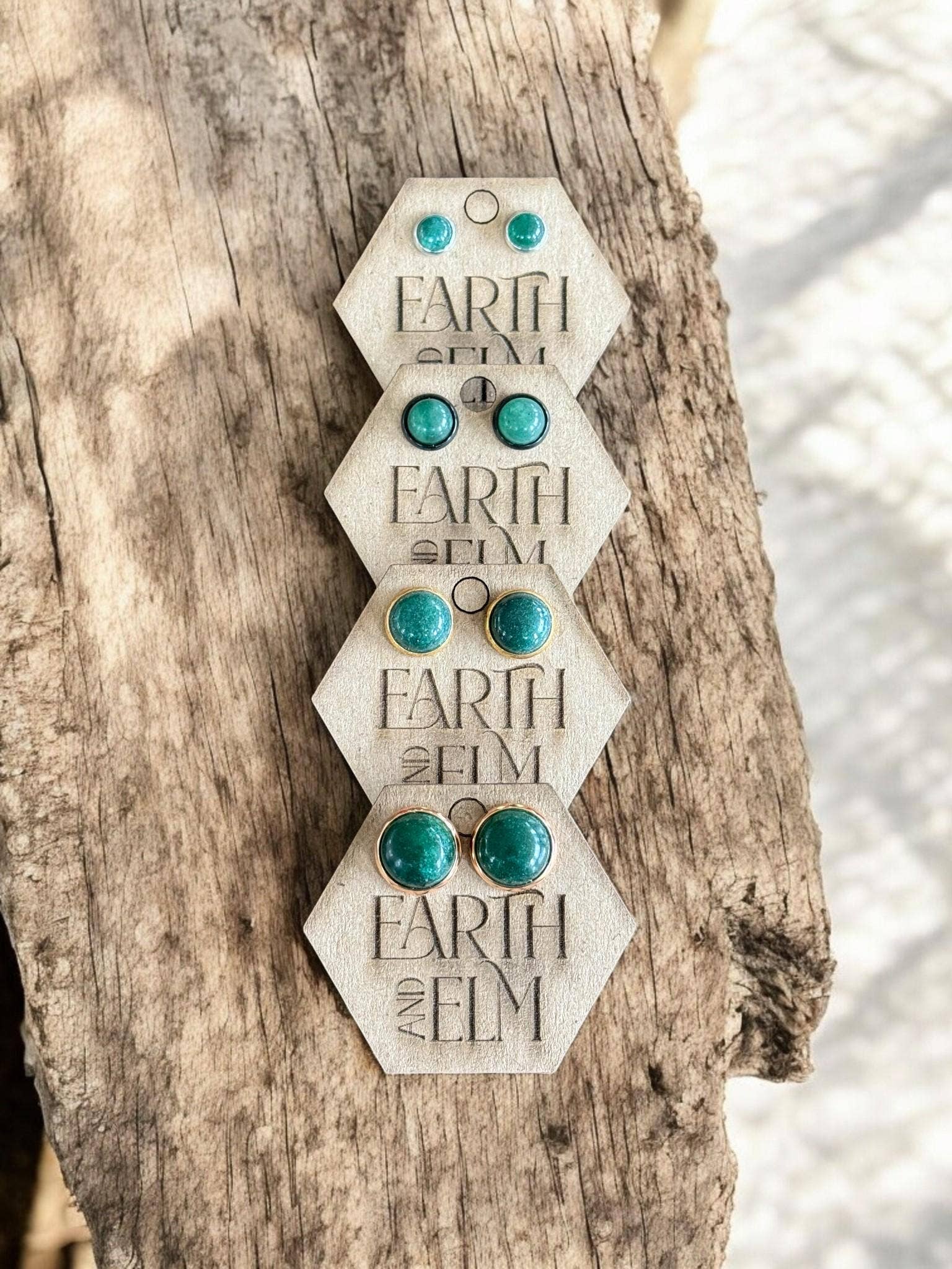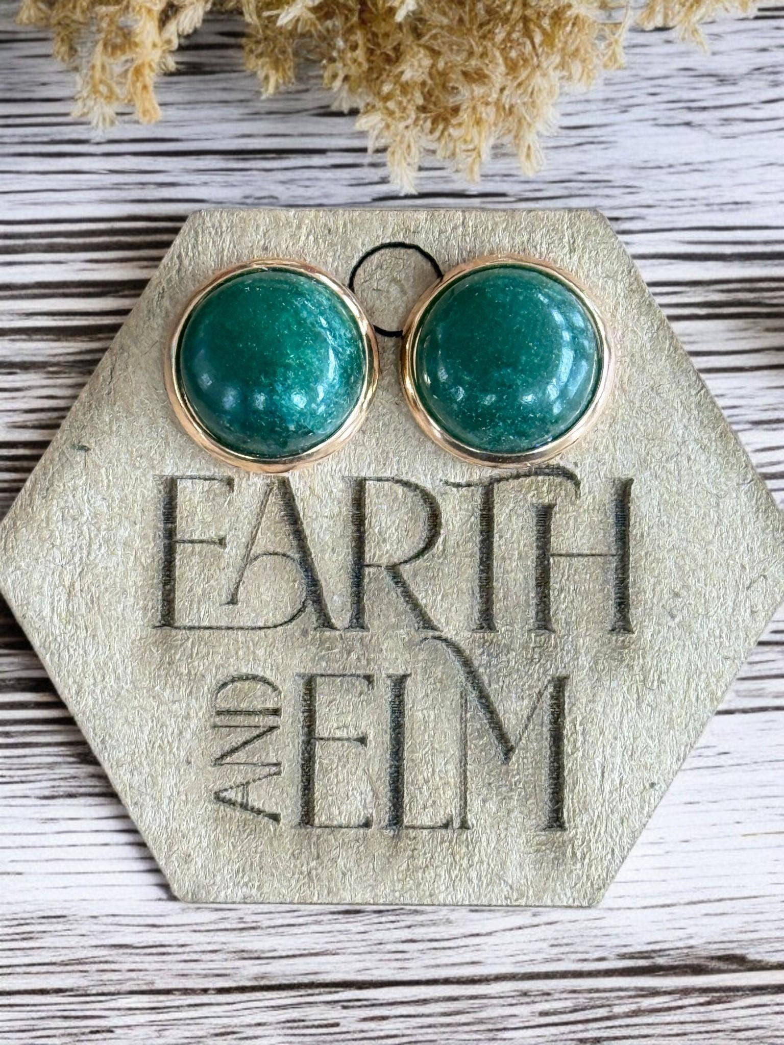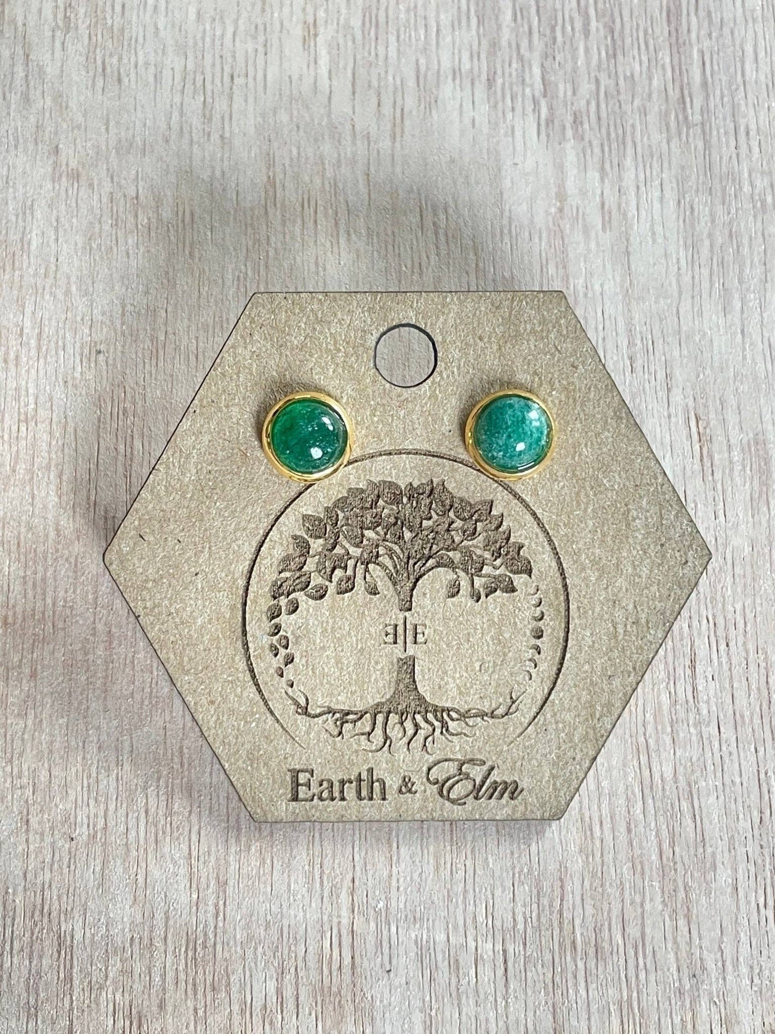 Made in Alberta, Canada These earrings start out as rough stone that is carved into small cabochons. Materials: green Aventurine, Surgical Steel.