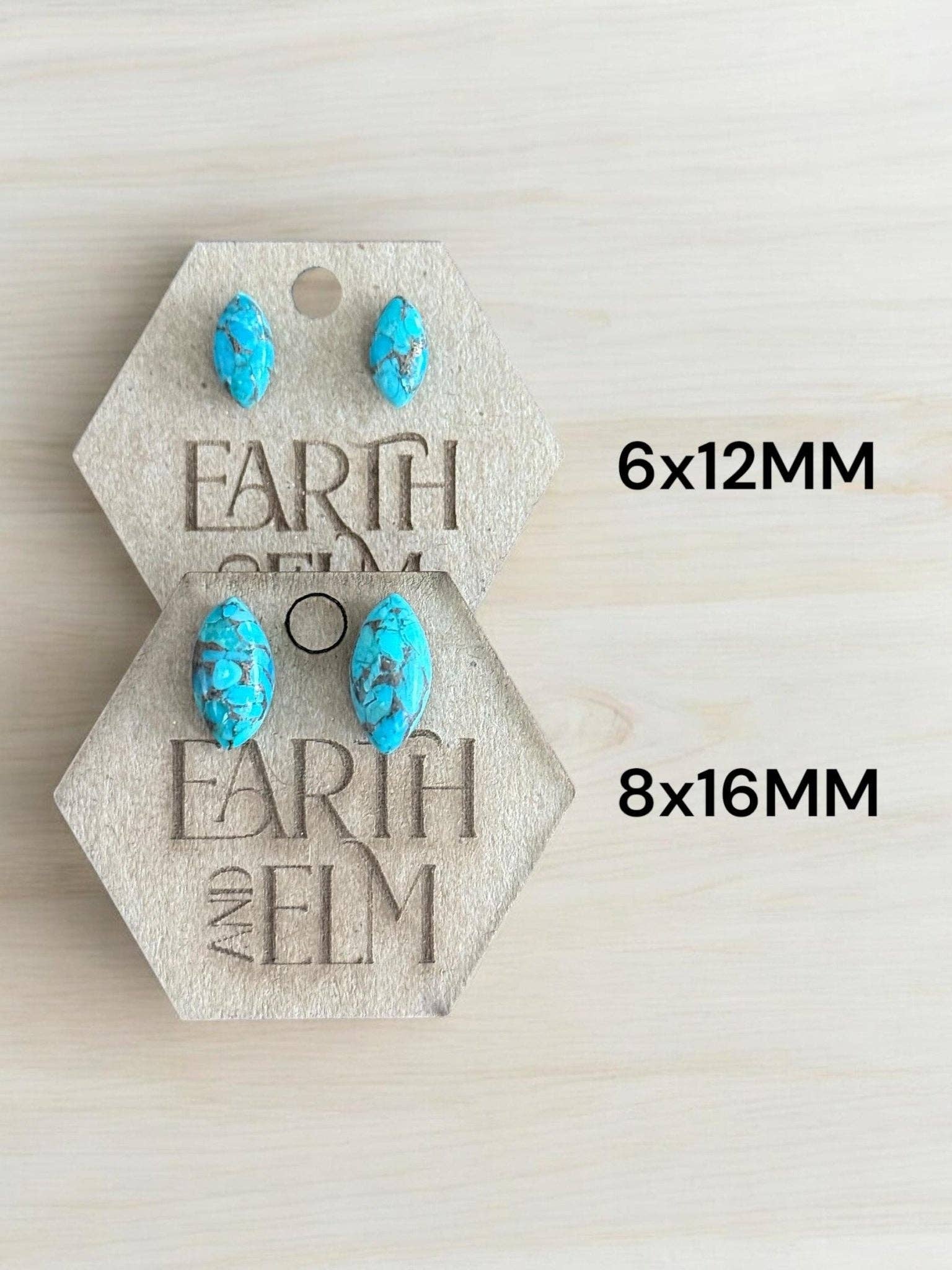 Made in Alberta, Canada These earrings start out as rough stone that is carved into small cabochons. The cabochons are prepped for post backs and attached to surgical stainless steel posts. We use UV resin to create a waterproof and long lasting connection. The studs are all handmade in small batches using authentic gemstone material.