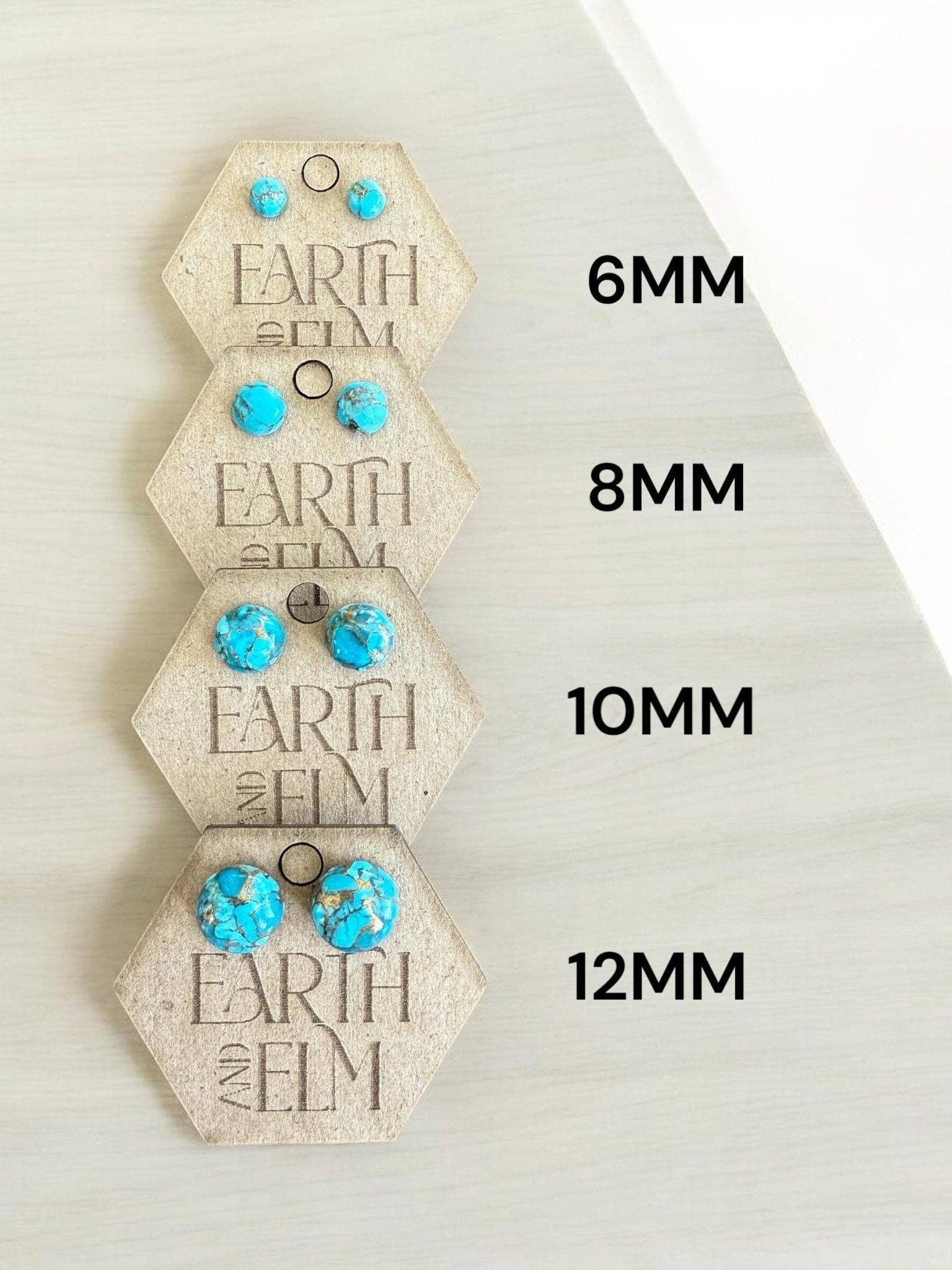 Made in Alberta, Canada These earrings start out as rough stone that is carved into small cabochons. The cabochons are prepped for post backs and attached to surgical stainless steel posts. We use UV resin to create a waterproof and long lasting connection. The studs are all handmade in small batches using authentic gemstone material.