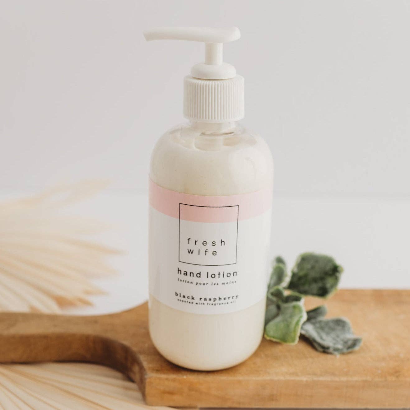 Our hand lotion is like no other! We use an Eco-Certified Preservative and Emulsifier along with hydrating Avocado oil and smoothing Camellia Seed Oil and Shea Butter. Protecting your skin from the abuse of environmental elements while keeping your skin soft and hydrated! Let your hands be part of the #freswifelife. Our Black Raspberry is the velvety embrace of blackberry and raspberry, seamlessly woven together with a creamy touch of vanilla. It's fragrant warmth is filled with the irresistible allure of sweet indulgent treats and will fill your moments with joy. It is one of our best selling scents!! Scented with the safest...... phthalate and paraben free fragrance oil!